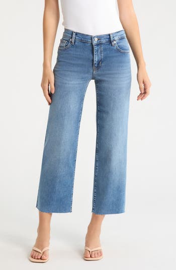 Low-stretch denim enhances the sleek silhouette of these straight-leg jeans styled with slightly cropped hems, making them the perfect choice for casual hangouts with friends.