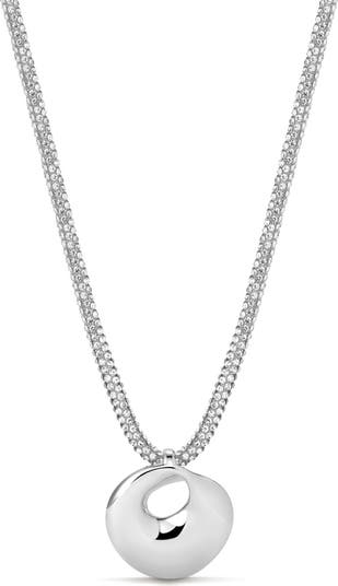 Add fluid, fiery shine to your look with this necklace featuring a molten hoop pendant suspended from a cubic zirconia–wrapped chain that catches the light from all angles.