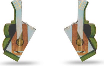 - Gris Still Life with a Guitar printed 14K gold-plated earrings