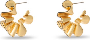 - 14K gold-plated ruffled hoop earrings inspired by the dancers moving skirts in Toulouse's La Troupe de Mademoiselle Eglantine