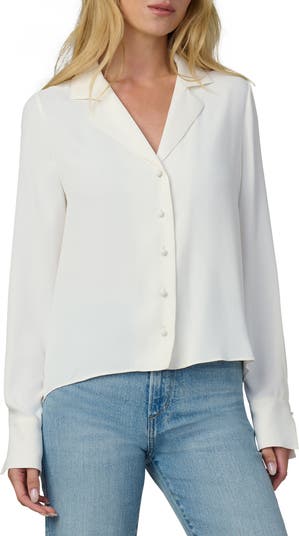 Flared cuffs and covered buttons combine with a gently flowy fit to make this white button-up an elegant element that's easy to style up or down.