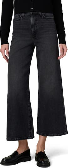 Ankle-length wide legs bring a modern, trend-right update to these vintage-inspired jeans featuring a superhigh waist and a faded-black wash.