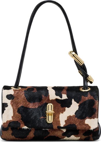 Silky genuine calf hair in a Western-inspired cow print enriches a scaled-down bag secured with a turnlock closure and suspended from dual shoulder straps.