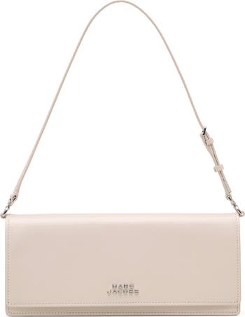 Marc Jacob's beloved daisy motif accents the flap as a convenient mirror on an East-West leather shoulder bag suspended from an adjustable strap for versatile wear.