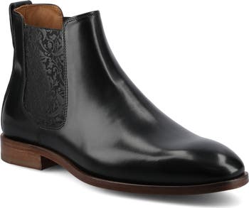 The Murphy Chelsea boot by TAFT is a timeless slip-on crafted from genuine leather, offering a refined and polished look. Its classic round-toe design is complemented by subtle floral details on the elastic gore, adding a touch of personality. With a cushioned insole for comfort and a durable leather and rubber outsole, it’s a perfect blend of elegance and practicality.