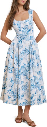 The Muse Floral Stretch Cotton Midi Dress