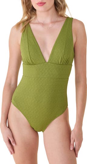 This shimmering one-piece swimsuit is superstretchy and perfect for taking a refreshing swim or stunning poolside.