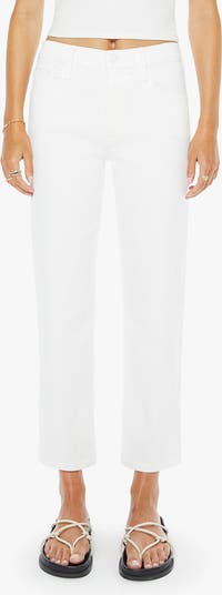 Perfect your polished-yet-casual-cool game in these white-wash stretch-denim jeans designed in a straight-leg silhouette in an above-the-ankle cut that shows off your footwear.