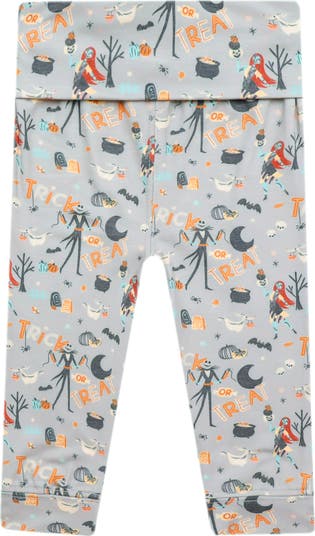 A clever fold-over waist adjusts as baby grows in these pants cut from buttery-soft fabric and covered in a whimsical print of The Nightmare Before Christmas.