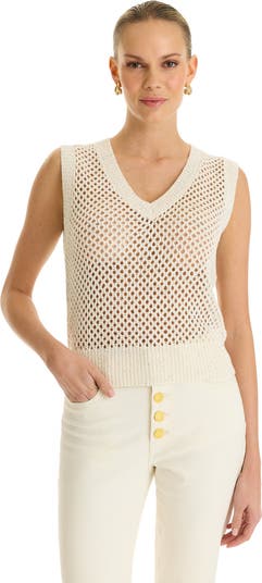 Embrace effortless chic style in the Addison Top. This stunning top is meticulously crafted with an intricate knit that weaves in shiny lurex and sparkling sequins for a glamorous, resort-ready look. Its airy silhouette and v-neck make it the perfect choice for sun-drenched days and glamorous evenings. Pair it with the Addison Crochet Skirt or the Dahlia Jeans.