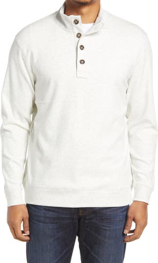 This cotton-blend knit pullover features a ribbed button placket and a cozy mock neck for an easygoing, comfortable look.