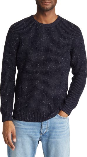 Neppy flecks scatter like confetti on a slightly chunky sweater knit for enhanced comfort with recycled oyster shells and plastic ocean waste.