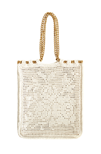 The Oma Crochet Bag brings a vintage sensibility into the present, where crochet is re-emerging as a key material of the season. Its name—“grandmother” in Dutch and Indonesian—anchors it in familiarity, expressed through hand-crocheted cotton and a softly structured silhouette. A gold-tone chain strap lends a quiet contrast. Crafted entirely by home-based mothers in Java, each bag reflects a lineage of artisanal knowledge. No two pieces are identical, each shaped by hand and time. Details Dimension: 15.4 (H) x 13 (W) Inches Composition: 100% Cotton Care Instruction: Handwash Made in Java, Indonesia