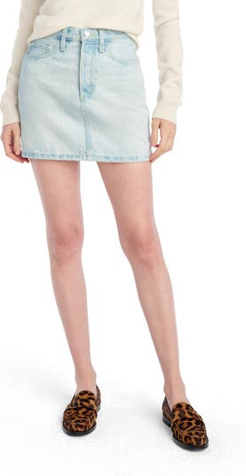 Minis are having a moment, and this denim pencil skirt that sits high on the waist with a bleached, light-blue wash is an absolute must.