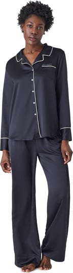 - A stylish pajama set with a relaxed fit, finished with contrast piping and mother-of-pearl buttons