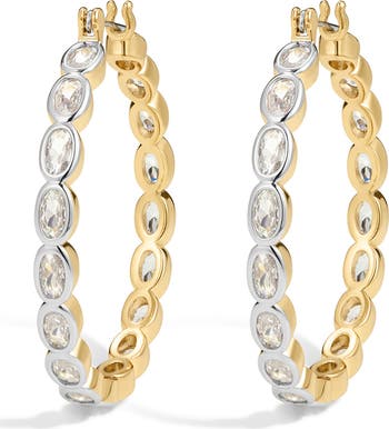 Two-tone ovals inlaid with glittering cubic zirconia light up your lobes on these hoop earrings that echo the ornate architecture of a storied French palace.