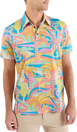 Whether you’re playing a little vacation golf in the Dominican, or bringing the tropics to the tee box at your home course, this bold golf shirt is ready to have some fun with you out there and transport you to your "happy place."