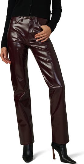 Svelte style is easy in these coated faux-leather pants designed in a slim, straight-leg fit.