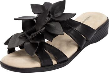This ultra-chic floral slip-on sandal is sure to keep your feet feeling comfortable all day long.