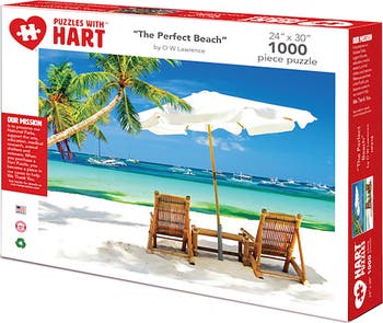 The only thing missing on this beach is you, your companion and a pina colada. You can only imagine where this beach is. Soak up the wind, waves and sunshine with this 24"x 30" 1000 piece puzzle. By artist O W Lawrence. You will enjoy hours of calm and tranquility completinh this 1000 piece puzzle. We pride ourselves on our high quality puzzles containing the finest art, photography and graphics. Hart puzzles also has a mission to help better our communities. When you purchase a Hart Puzzle, you become a "piece" in our cause to help. With every puzzle we sell, Hart Puzzles automatically donates to a cause such as our National Parks, animal shelters and veterans.