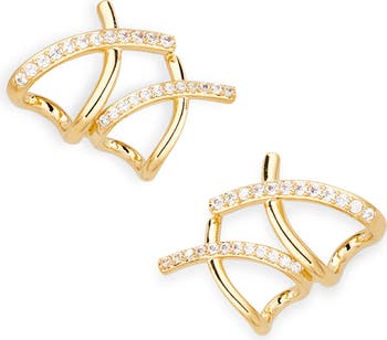 A sprinkling of cubic zirconia lends everyday sparkle to these double cage stud earrings plated in 18-karat gold.