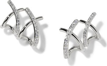 A sprinkling of cubic zirconia lends everyday sparkle to these icy and airy double cage stud earrings.