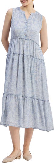Breezy Bemberg™ Crepe maxi dress with ruffle detailing and pockets. Perfect for sun-soaked days or lounging at home.