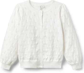 Our pointelle cardigan is a classic for a reason. Made in soft, pure cotton with puffed sleeves and ribbed trim, it's ready to layer over every look.