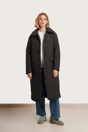 Your go-to for staying warm without the bulk. This slim-fit puffer hugs your curves (no puffy marshmallow vibes, we promise) and features a zip-in panel for your growing bump. Knee-length for extra coverage and in versatile black, it goes with everything. Flattering, comfortable, and perfect for those chilly days when you want to feel cozy without feeling weighed down.