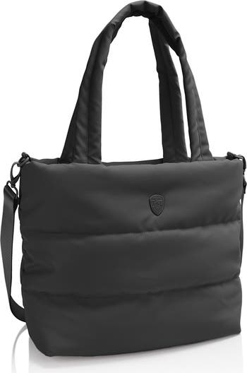 Perfectly sized to meet "personal item" dimensions for airlines like West Jet, EuroWings, and most smaller carriers, the Heys Puffer Tote Bag ensures that you can breeze through your travels without any extra fees. Crafted from luxuriously soft, lightweight, water-resistant PU‑coated polyester, this tote seamlessly blends premium quality with smart, travel‑ready design.\nAvailable in six stunning shades — including Atmosphere, Off White, Light Blue, Lavender, Rose, and Black — this bag isn’t just about practicality; it’s a style statement. Its spacious colour-matching interior, water bottle pocket, and a clever camouflaged back zipper pocket keeps your essentials perfectly organized whether you're off to the gym, away for the weekend, or jet‑setting on your next adventure.\nAdditional features include dual top zip closures, six interior pockets (including one padded pocket designed to fit a 16" laptop and two secure zipped pockets), a hidden top grab pocket with an extendable key fob, and dual top carry handles. With versatile carrying options—whether by shoulder or top—with a detachable/adjustable nylon strap and a convenient slide through trolley strap pocket for easy airport navigation, the Heys Puffer Tote Bag elevates every journey with its blend of style, function, and travel efficiency.