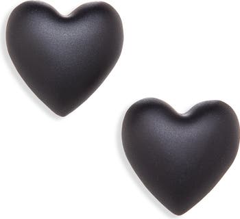 These puffy heart stud earrings feel both tough and tender in a matte black finish.