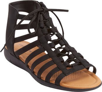 A luxe update to the classic gladiator style, the Renata sandal features cut-out detail with elastic laces for that perfect fit. It goes great with dresses and denim alike.