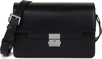 A structured silhouette defines this elevated everyday crossbody bag featuring a push-lock closure, an interior zip pocket and removable webbing strap.