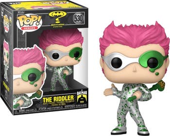 Solve a puzzle with the most quizzical villain around, Pop! The Riddler! Celebrate 85 Years of Batman when you welcome him to your Batman Forever lineup as this metallic Pop! The Riddler. Vinyl figure is approximately 4.15-inches tall.