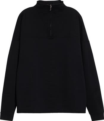 This relaxed-fit cotton fleece sweatshirt is softened with a sculpted funnel neck and rounded shoulders. A J-script logo pull brands the half-zip closure.