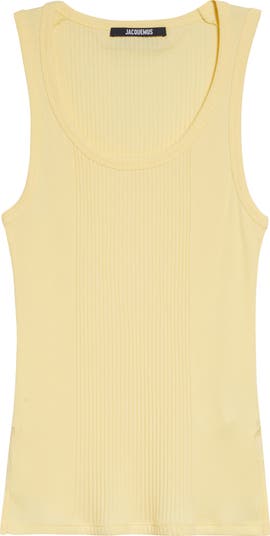 The label's 'circle and square' feature comes into play at the armhole openings of this ribbed tank knit in a fitted silhouette from soft cotton jersey.