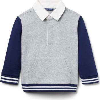 A French terry favorite with athletic-inspired details. We love the contrast collar, striped accents and front pocket.