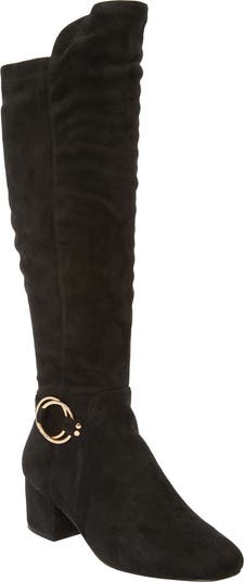 A stretch suede-like upper and a wide width calf beautifully blend together to create a stylish silhouette and a perfect fit, too. This boot has a modern look with a classic appeal and the versatility to match with most anything in your wardrobe.