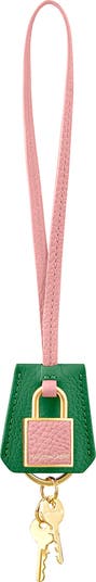 A new benchmark in functional elegance, firmly fastened to your most cherished MAISON de SABRÉ carryall. Sustainably crafted with full-grain European leather offcuts, the dynamic dual-tone Charm personalises your adventure while offering a fully functional solid brass padlock for enhanced security. Perfected with high-polish gold hardware and a striking hand-placed leather panel, the removable padlock arrives with two keys that melodically chime with every step. Ensuring a signature swing with every wear, the Charm’s soft leather leash can be tied around all handbag handles or secured clipped to dedicated D-ring attachments. A declaration of playful luxury while ensuring your most secure stowage yet.