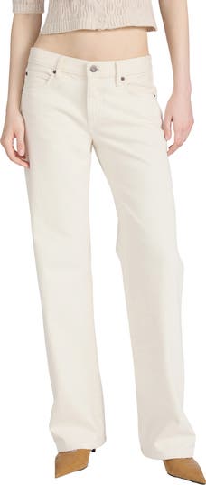 Relaxed and ready for the weekend, these nonstretch jeans feature a low-rise waist, full-length straight legs and a casual-chic off-white hue.