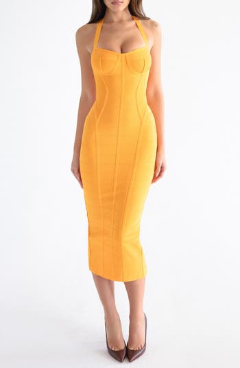 The Sculpt Halter Neck Bandage Midi Dress