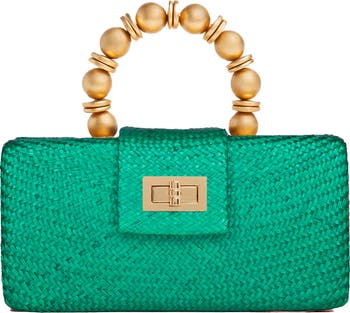 She's back in a show-stopping jewel tone. Our bestselling Serena clutch returns in a rich green that works as both a sophisticated neutral and a bold statement piece. The signature beaded wooden handle is what makes the Serena unforgettable - it's tactile, artisanal, and instantly recognizable. The compact clutch size is perfect for essentials (phone, wallet, keys, lipstick), while the turn-lock closure with gold hardware keeps everything secure. Includes a removable crossbody strap so you can wear it as an elegant clutch for evening or go hands-free for exploring