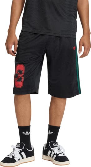 An archival rose motif and a slightly slouchy fit bring '90s nostalgia to life in soccer shorts made entirely of recycled fibers and finished with color-pop 3-stripes racing up the legs. They cinch above the hips and hit below the knees to keep you moving and relaxing in comfort, while zippered hand pockets keep small essentials secure and easy to access.