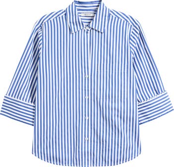 An easy take on the classic button-up, this striped shirt features a point collar with a few buttons on the placket for an intentionally open look. Crafted from a crisp, midweight cotton poplin, it's slightly structured and very versatile.