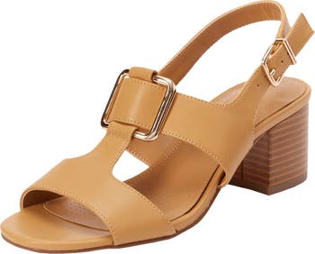 A metallic buckle detail elevates this everyday sandal. It pairs well with dresses to denim alike.