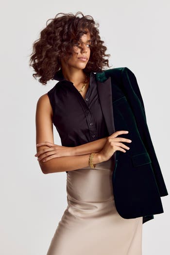 Our warm weather cotton staple.The Sleeveless Shirt is a classic for layering or to wear on its own. Narrow armholes mean bra won't peek through the side and won't peek through the front either. Rochelle Behrens reimagined how shirts should fit and feel. Our patented No Gape button technology, seamlessly designed into every shirt and shirtdress we design, eliminates blouse gape. Finally say bye bye blouse gape, hello The Shirt.