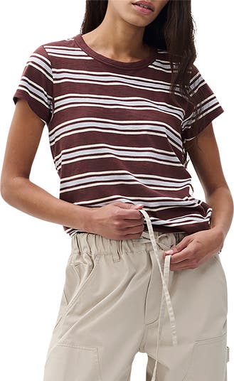 Mixed stripes animate this fitted, vintage-vibe T-shirt made from soft cotton slub that gives it subtle detail and texture.