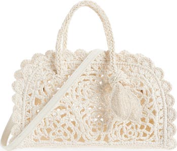 Entirely handcrafted by artisans in Madagascar, this crocheted raffia-effect bag took approximately 100 hours to complete and is the ideal size for your warm-weather essentials.
