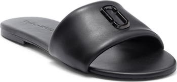 Tonal logo hardware brings signature style to the smooth leather band of this minimalist slide sandal crafted with modern restraint.