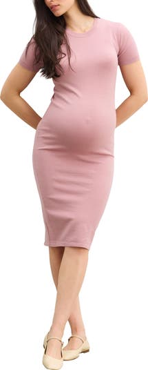 A sleek, body-skimming midi in our Softsculpt knit. Short sleeves, deep neckline, and a flattering empire waist with stretch to grow.